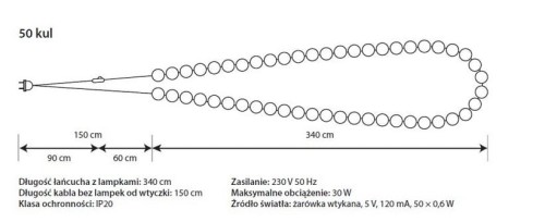 Zawartość zestawu: kule, żarówki + 5 sztuk zapasowych żarówek,