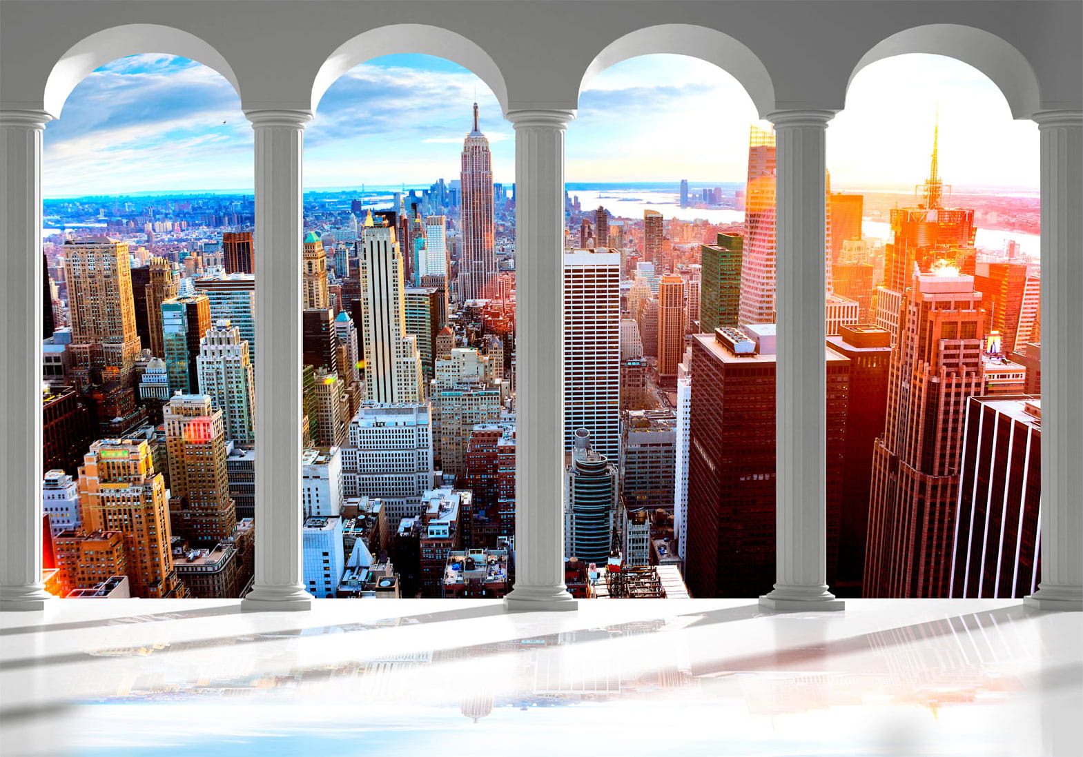 Fototapety stają się coraz bardziej popularne i z pewnością jeszcze długo będą wpisywać się w obowiązujące trendy wnętrzarskie. Wynika to m.in. z faktu, że dają spektakularne efekty, a ich montaż nie stanowi dużego problemu. Fototapeta Fototapeta - Filary i Nowy Jork pozwala na całkowitą zmianę dotychczasowej aranżacji i to bez potrzeby przeprowadzania gruntownego remontu. Wystarczy odpowiednio dobrać wzór, aby stworzyć klimatyczne i eleganckie wnętrze. Nasze fototapety na wymiar to odpowiedni wybór dla każdego, komu marzy się metamorfoza domu. Z ich pomocą można bez dużego wysiłku odświeżyć dowolne pomieszczenie, a więc sypialnię, salon, pokój dziecka czy jadalnię. Fototapety ścienne są niezwykle łatwe w montażu. W porównaniu do zwykłego malowania praca nie zajmuje tak dużo czasu, można z powodzeniem wykonać ją samodzielnie. W dodatku taka dekoracja pozwala na zamaskowanie niedoskonałości ścian (np. trudnych do usunięcia plam) i uzyskanie doskonałych efektów.Najwyższej jakości fototapety ścienne