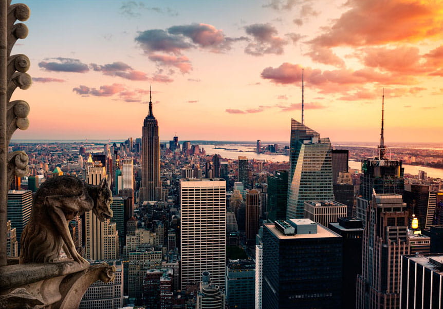 Fototapeta - Nowy Jork: wieżowce i zachód słońca