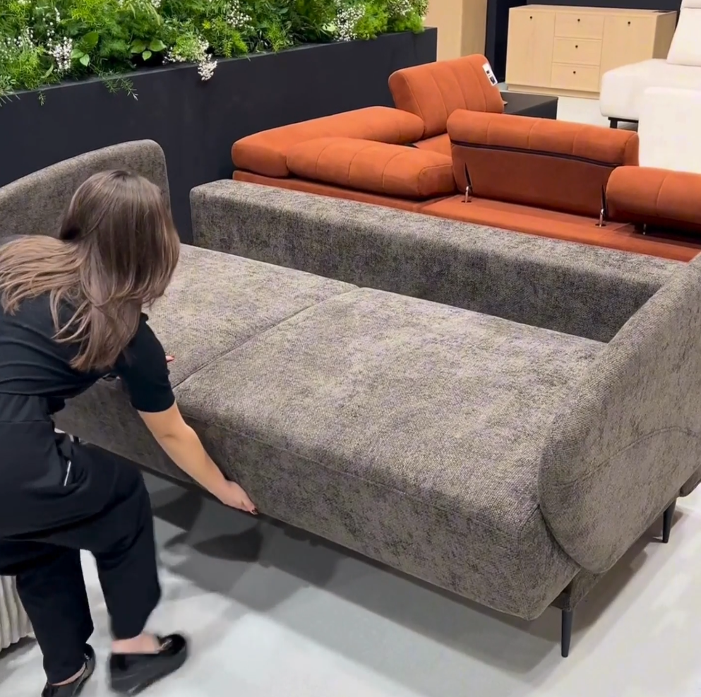 Elegancka, wygodna i praktyczna na co dzień. Natali to kanapa do salonu, która w kilka sekund zamienia się w pełnoprawne łóżko. Popielata plecionka Magni 206.12 nadaje wnętrzu nowoczesnego charakteru, a smukłe czarne nogi optycznie „unoszą” bryłę. Miękko zaoblone boki, smukłe proporcje i elegancka plecionka świetnie pasują do aranżacji modern, scandi i japandi. Natali to dopracowana kanapa rozkładana, która łączy świetny wygląd z funkcjonalnością: wygodne siedzenie, szybkie spanie i pojemny schowek. Idealny wybór, gdy jedna kanapa do salonu ma spełniać wiele zadań – bez kompromisów w komforcie i stylu.
