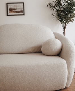 Przytulna, miękka i niezwykle wygodna kanapa do salonu, która łączy nowoczesny wygląd z praktycznymi rozwiązaniami. Obłe linie, dekoracyjne wałeczki i modna tkanina bouclé (Lambi 11) tworzą efekt „otulenia” – w dzień elegancka ozdoba wnętrza, wieczorem komfortowa sofa rozkładana. Dzięki uniwersalnym rozmiarom sprawdza się zarówno w mniejszych, jak i większych przestrzeniach jako funkcjonalna kanapa rozkładana.