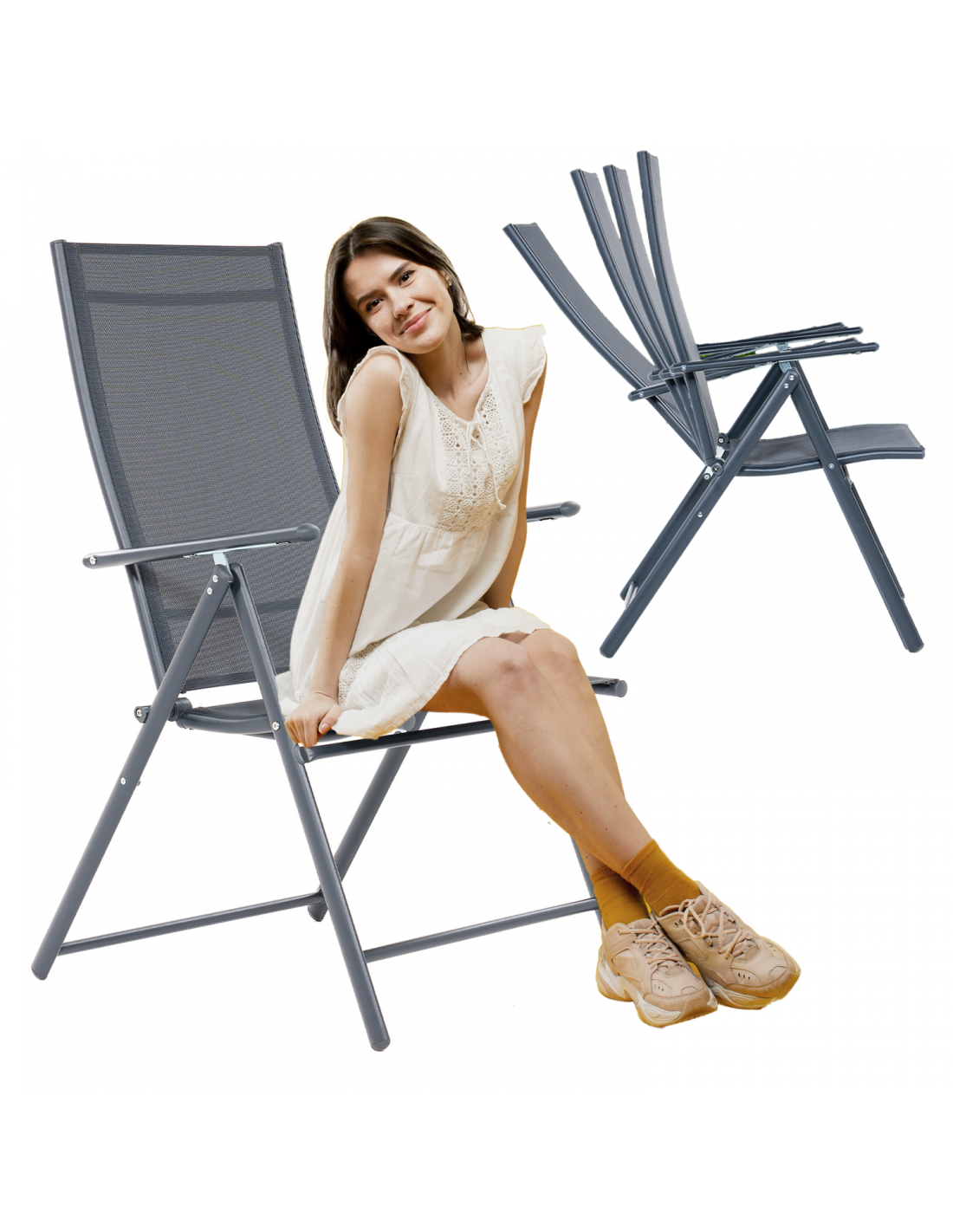Krzesło rozkładane ogrodowe wielopozycyjne DAYTONA – zestaw 2 sztuki | komfort dopasowany do Ciebie