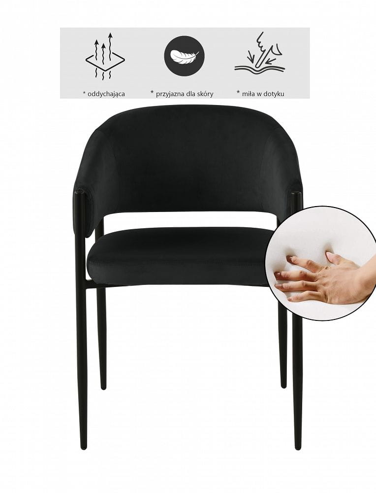 Krzesło tapicerowane czarne SANNA – aksamitny komfort w nowoczesnej odsłonie