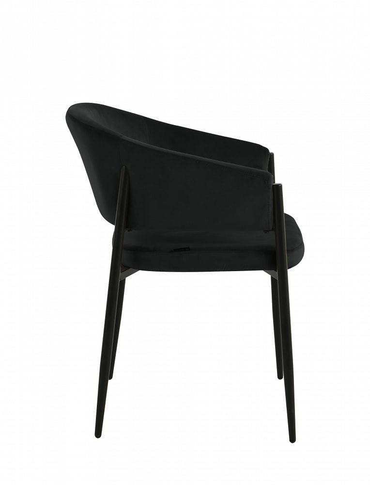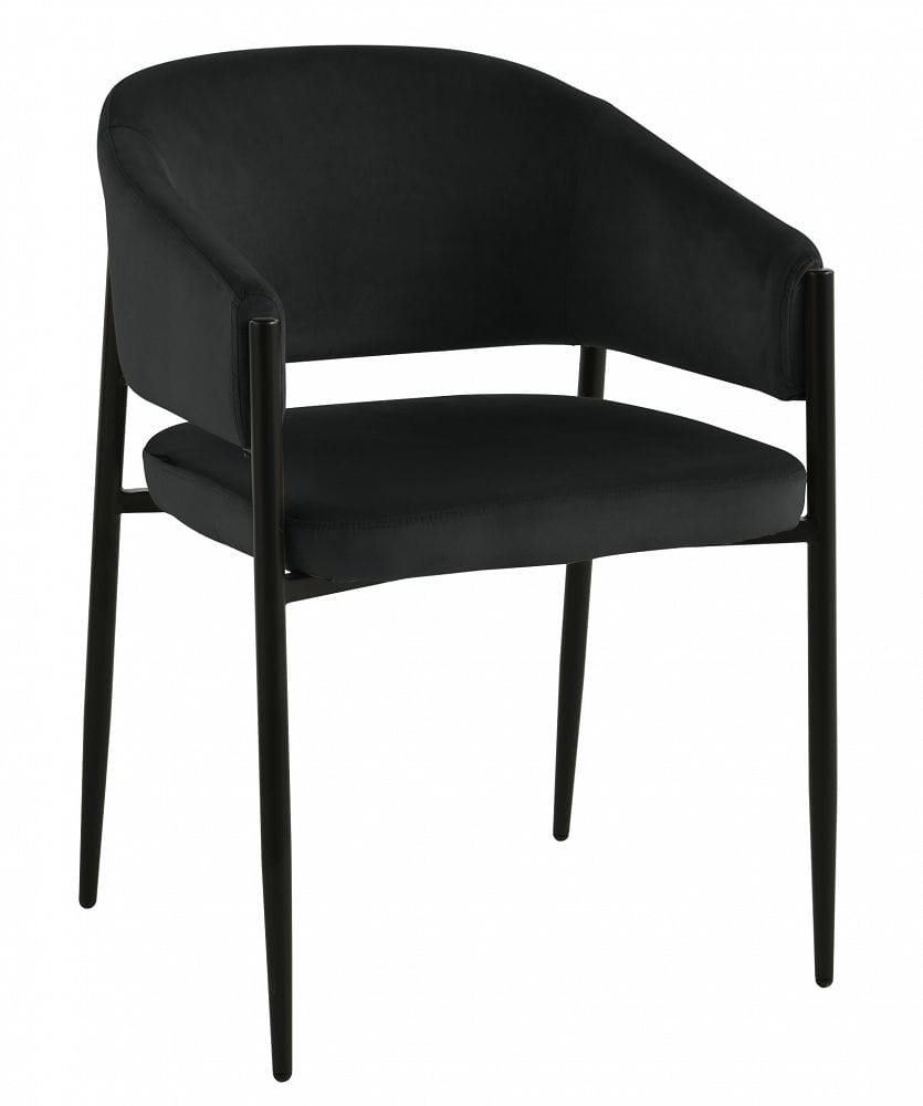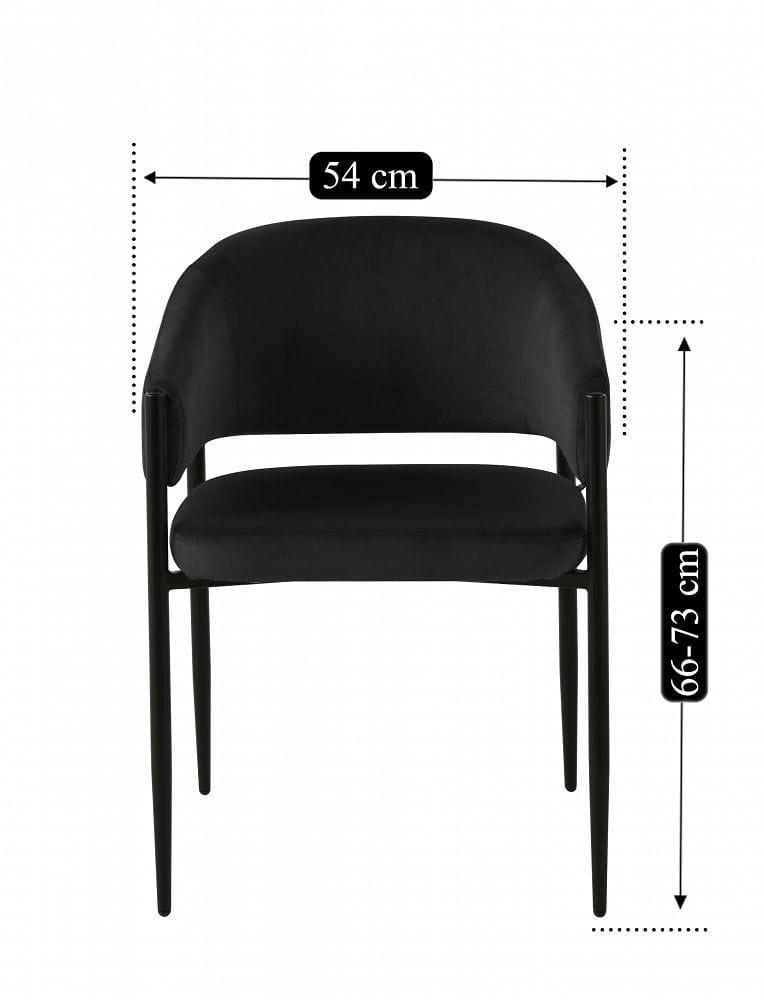 SANNA to krzesło do jadalni tapicerowane, które łączy elegancję czarnego aksamitu z lekką, metalową konstrukcją. Smukła sylwetka na zwężanych nogach sprawia, że mebel wygląda finezyjnie, a jednocześnie pozostaje stabilny i wytrzymały – idealny wybór do codziennego użytku w jadalni, salonie czy gabinecie.