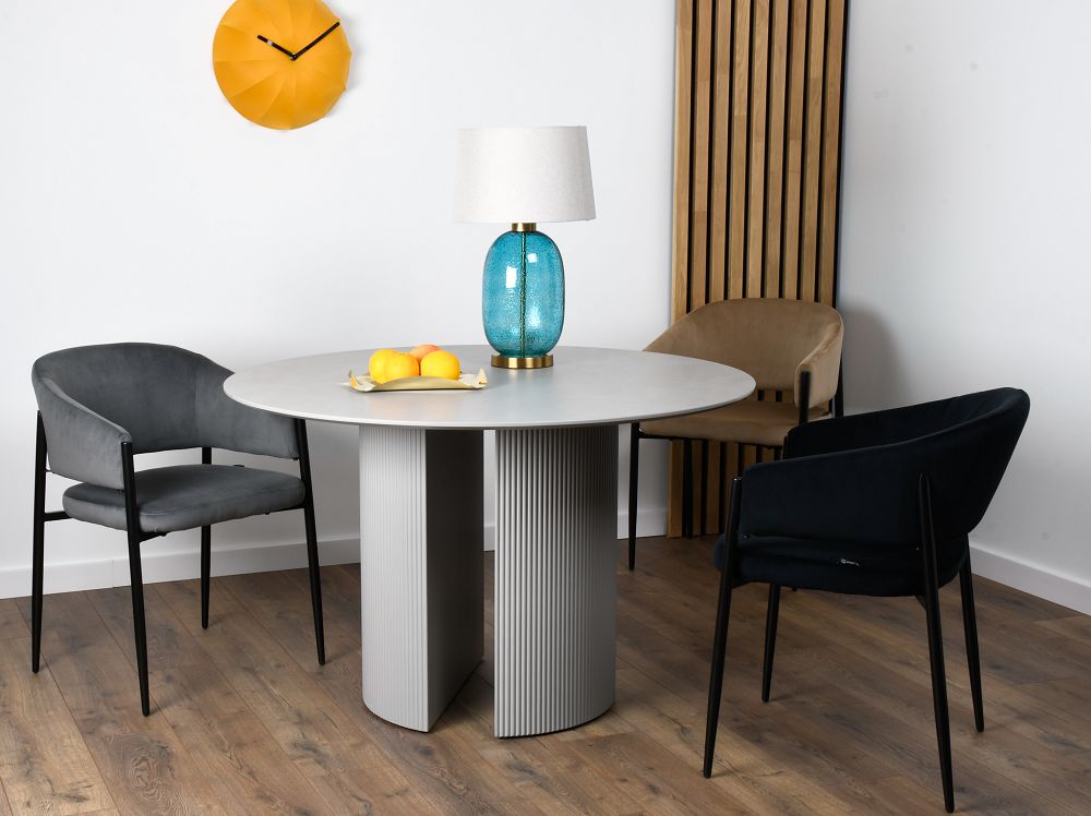 - Monochromatyczna czerń - Klasyczny kolor wpisuje się w aranżacje glamour, loft i nowoczesne; łatwo zestawić go z drewnianym stołem albo marmurowym blatem.