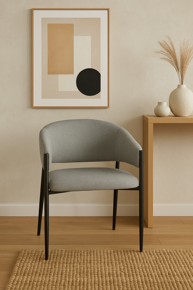 - Neutralny odcień szarości - Łatwo zestawisz go z każdym stołem – od naturalnego dębu po nowoczesny blat z czarnego szkła; idealny, gdy kompletujesz różnokolorowe krzesła tapicerowane do jadalni.