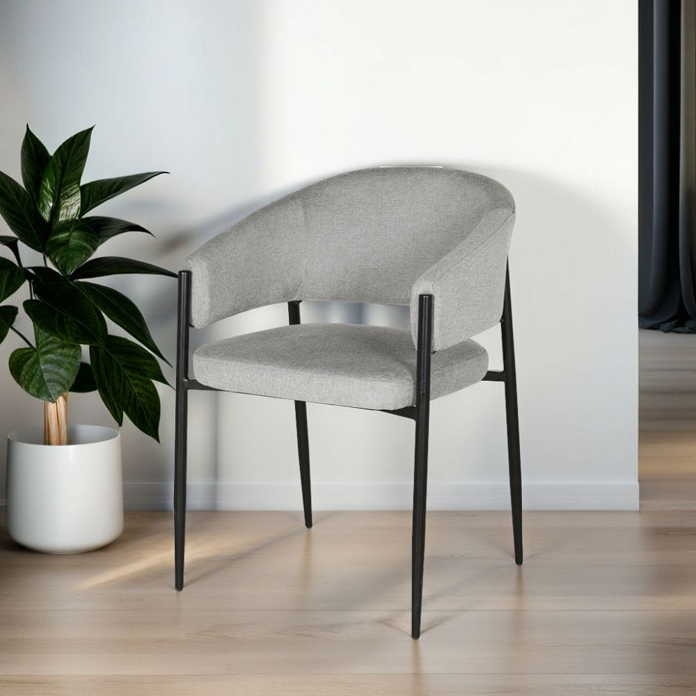Poznaj krzesło do jadalni tapicerowane SANNA, które łączy komfort miękkiej, odpornej na ścieranie tkaniny z nowoczesną, filigranową konstrukcją stalową. Jasnoszare obicie o delikatnym splocie wprowadza do wnętrza lekkość i świeżość, a zwężane, czarne nogi tworzą elegancki kontrast, dzięki czemu mebel harmonijnie wpisuje się zarówno w minimalistyczne aranżacje skandynawskie, jak i w loftową surowość drewna oraz betonu.