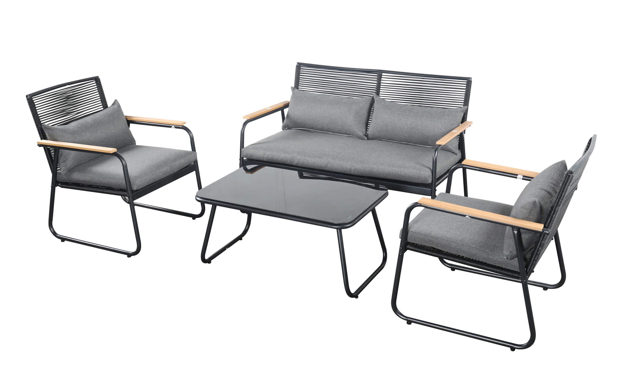 Połączenie grafitowej kolorystyki, plecionki z technorattanu i podłokietników imitujących drewno tworzy harmonijną całość, która odmieni każdą przestrzeń na świeżym powietrzu.