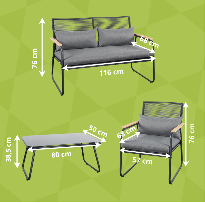 Stwórz elegancką i funkcjonalną przestrzeń wypoczynkową dzięki nowoczesnemu i kompaktowemu zestawowi CUBANO. Ten wyjątkowy zestaw mebli ogrodowych łączy minimalistyczny design z naturalnymi akcentami, dzięki czemu doskonale sprawdzi się zarówno jako meble na taras, jak i stylowe meble na balkon. To również idealny zestaw mebli na balkon dla osób, które cenią wygodę i ponadczasowy wygląd.