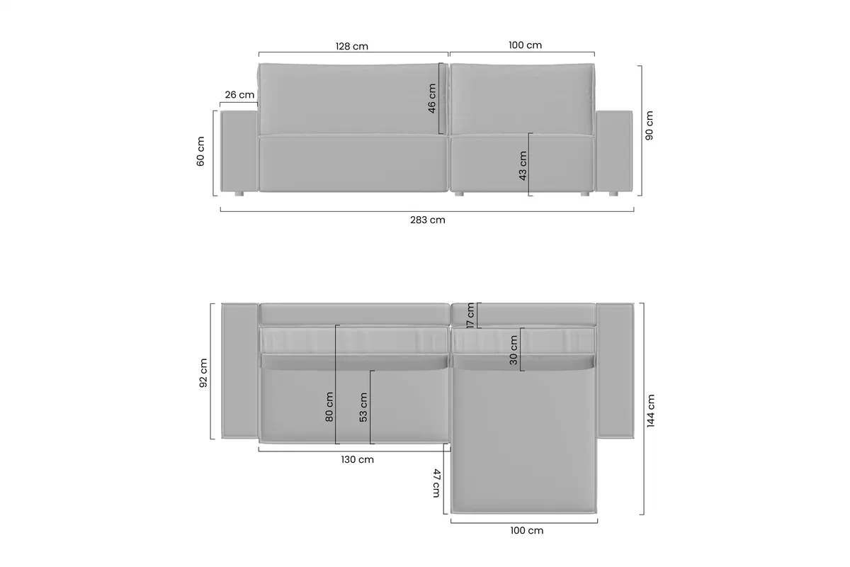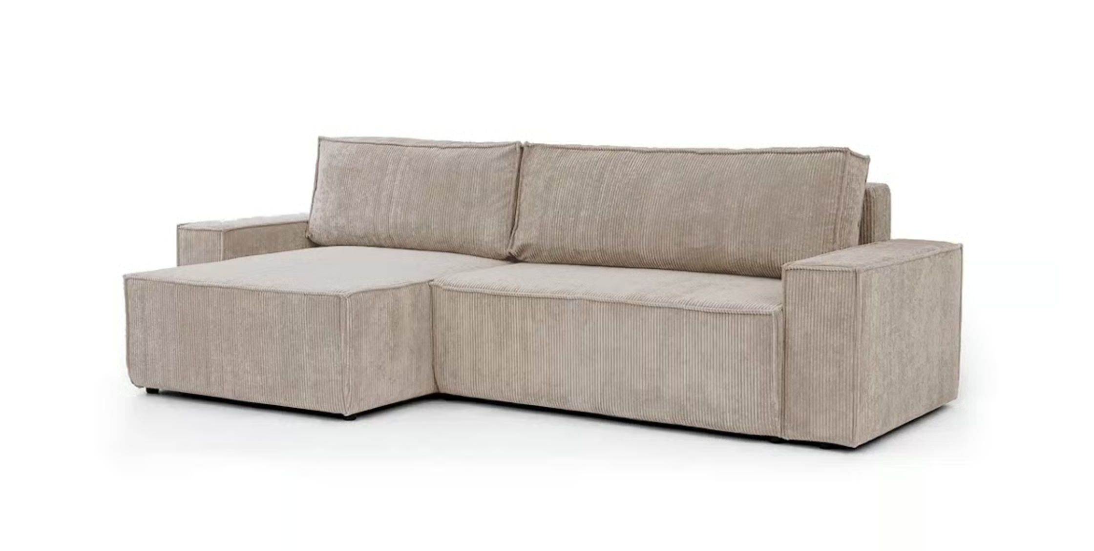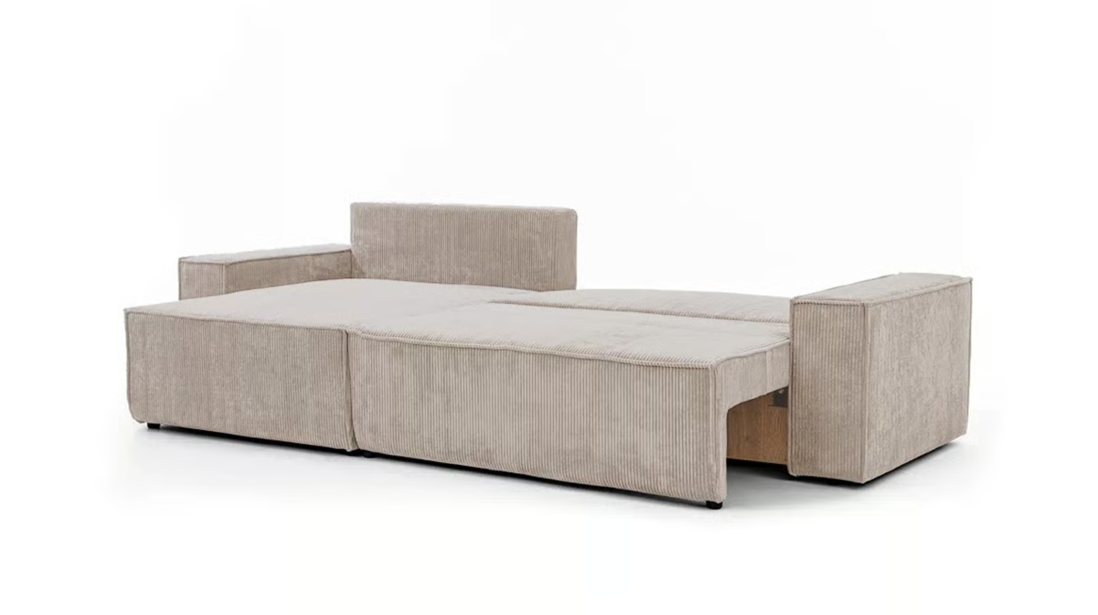 - Narożnik rozkładany - Szybki mechanizm tworzy równą powierzchnię snu 230 × 122 cm – idealną dla gości lub do codziennych drzemek.