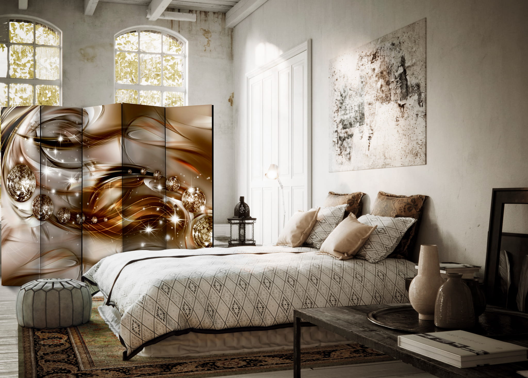 Parawan Parawan - Czekoladowy przypływ II to element wyposażenia dający wiele możliwości. Cechuje go m.in. praktyczność. Jego podstawowym zadaniem jest podzielenie przestrzeni na kilka stref w dyskretny i estetyczny sposób. Parawany pokojowe pozwalają na odseparowanie w ciekawy sposób części przeznaczonej do relaksu od tej wyznaczonej do pracy. Dlatego często znajdują one zastosowanie w salonie. Parawany pozwalają też na sprytne ukrycie czegoś, co nie powinno być w pełni widoczne, przykładowo stojaka z ubraniami czy też suszarki z praniem. Można wykorzystać je więc na różne sposoby, zależnie od własnych potrzeb i wymagań. Dostępne w naszej ofercie parawany pokojowe to flizelinowe płótno zamocowane na drewnianym stelażu. Wyróżniają się bardzo solidną konstrukcją, a do wyboru są dwa formaty: 3-częściowy oraz 5-częściowy. Poszczególne elementy są ze sobą połączone za pomocą metalowych, mocnych zawiasów. Złożenie i rozłożenie parawanu nie stanowi żadnego problemu.