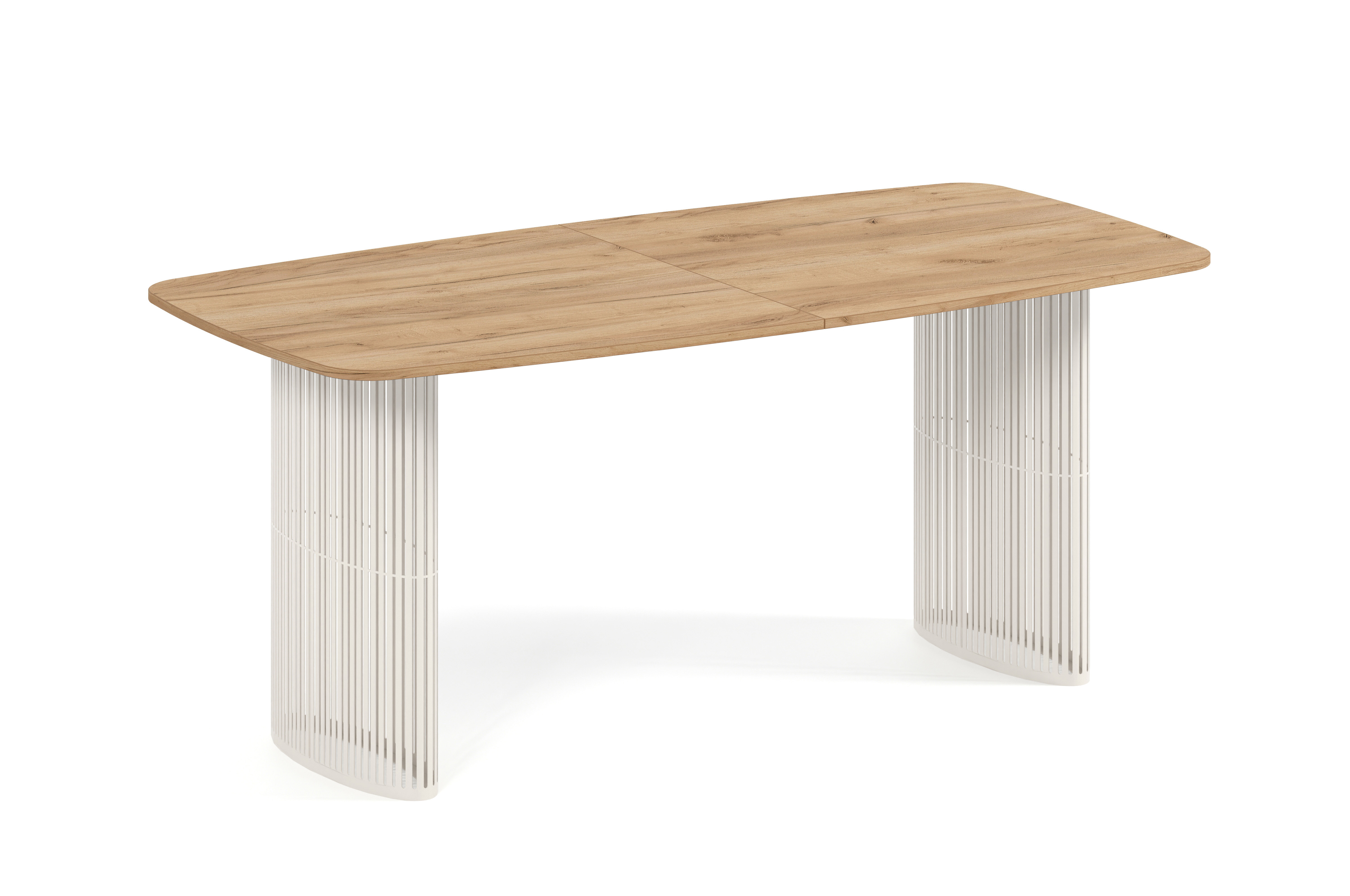 Nowoczesny, owalny stół rozkładany Arcadia 160 cm wyposażony jest w trwały stelaż wykonany z solidnej stali malowanej proszkowo, co zapewnia stabilność oraz odporność na uszkodzenia. Blat z płyty laminowanej gwarantuje wysoką wytrzymałość i łatwość w utrzymaniu czystości, a możliwość wykonania czarnego obrzeża dodaje mu jeszcze więcej elegancji i charakteru.