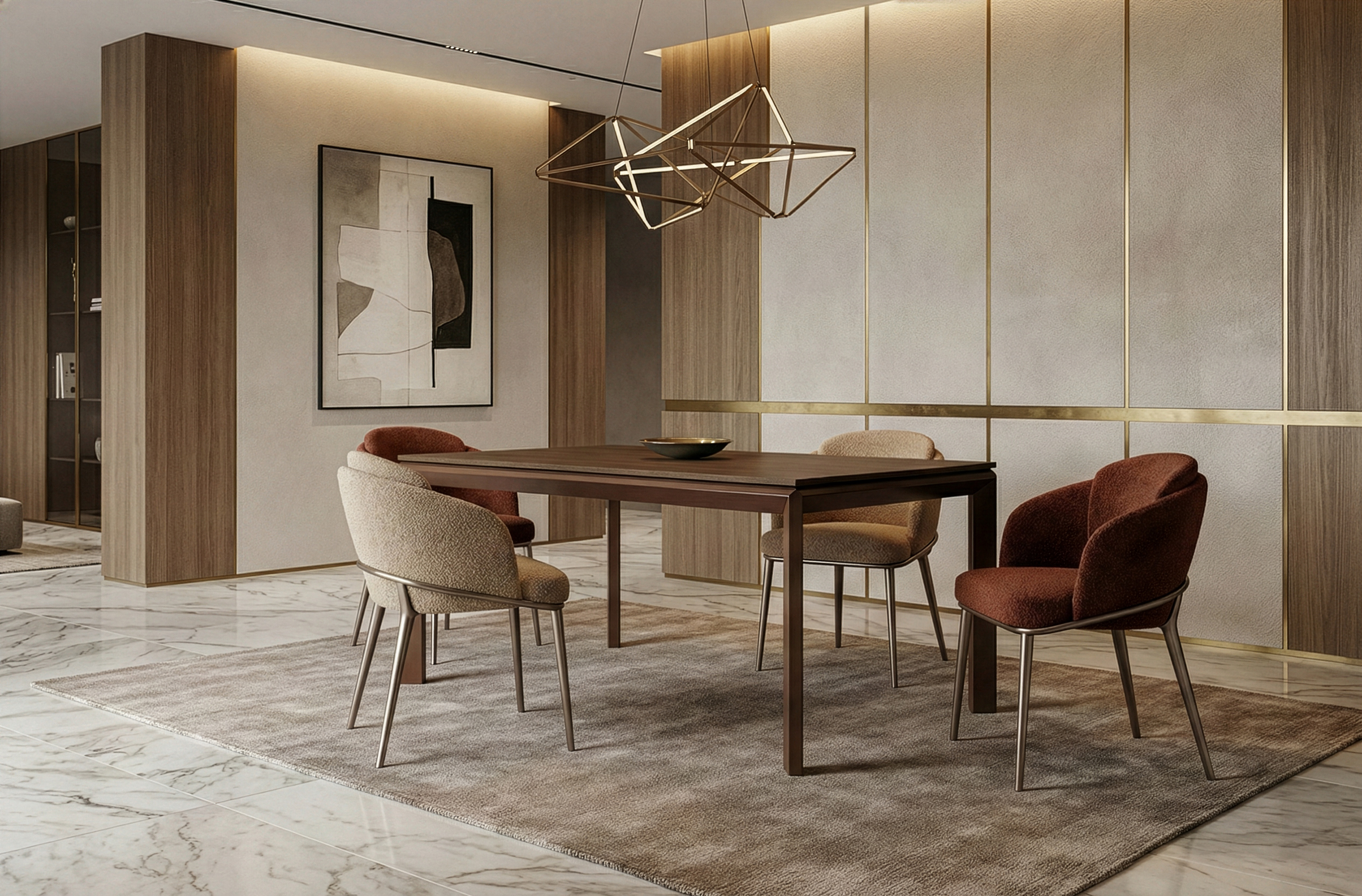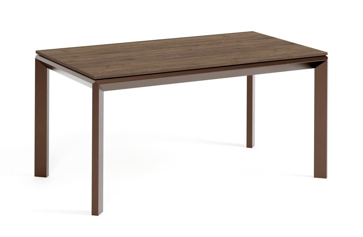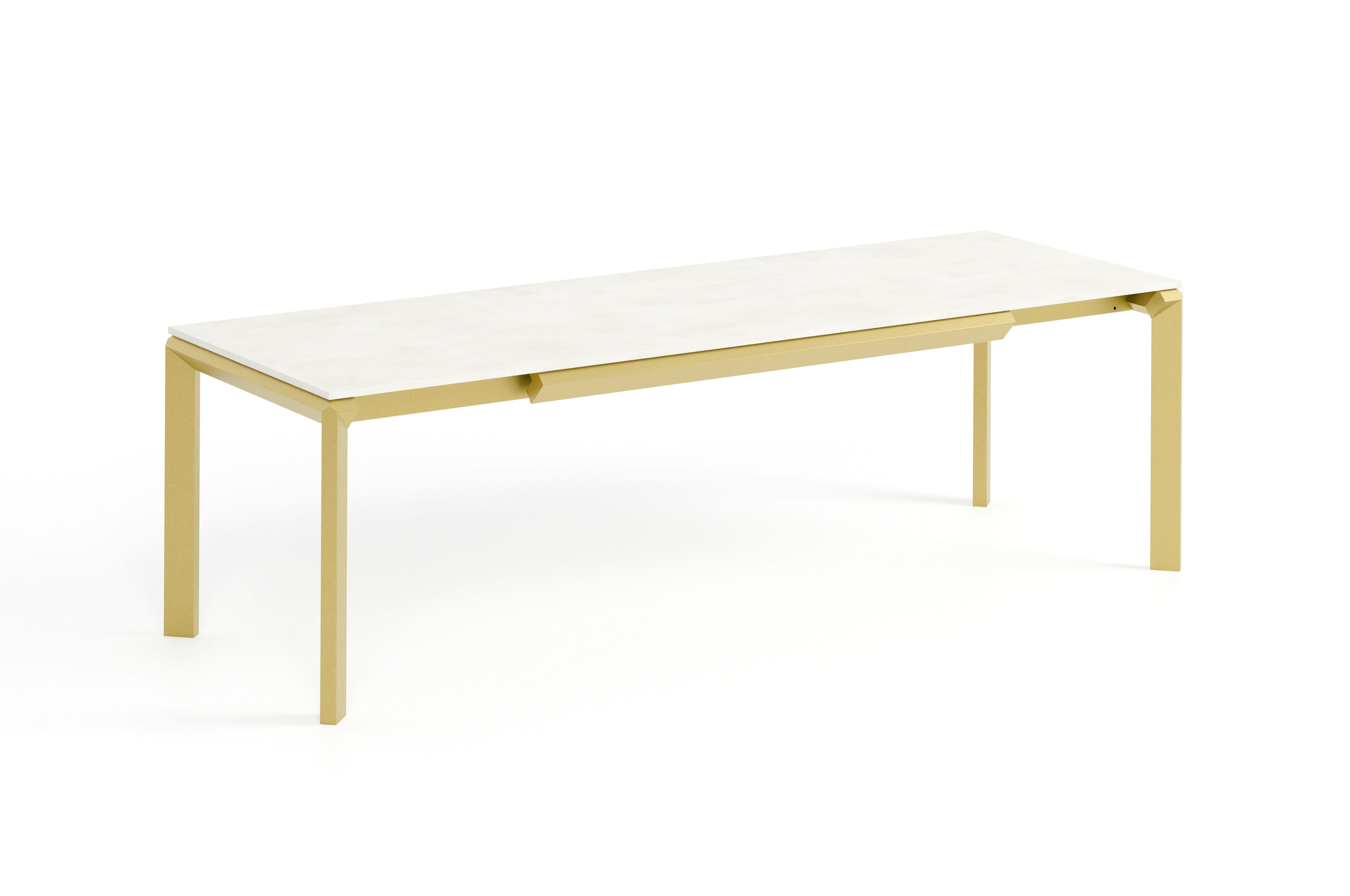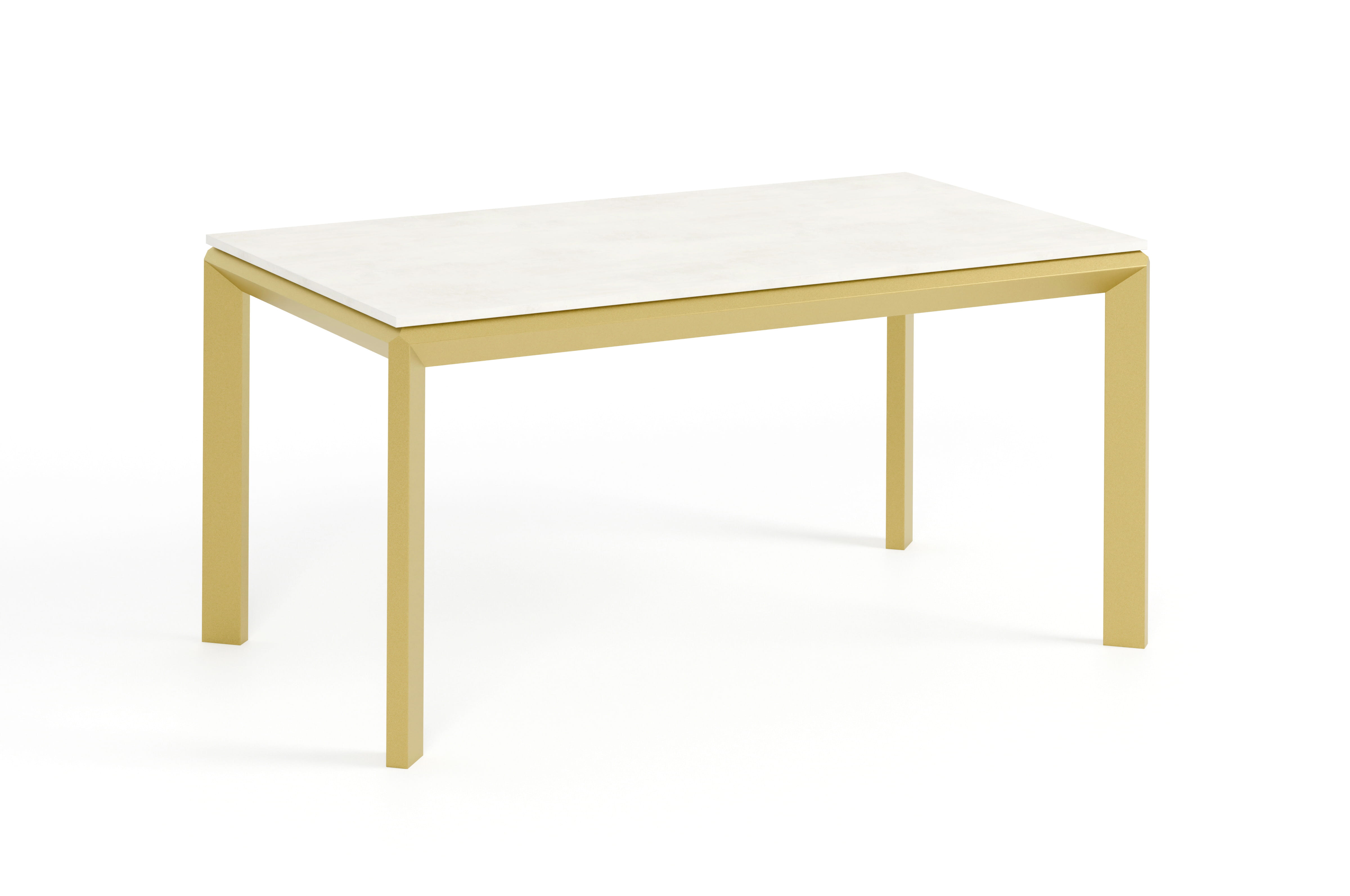 Charakterystycznym elementem konstrukcji są geometryczne nogi w formie rombów, które nadają bryle wyrazisty, architektoniczny charakter. Cofnięta konstrukcja ramy sprawia natomiast, że blat wygląda jakby unosił się nad podstawą, tworząc efekt lewitującego blatu, który podkreśla lekkość i elegancję całej formy.